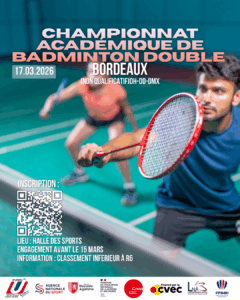 Doubles : DH - DD - DMxMardi 17 MarsHalles des sports 20hInscription avant le 15/03