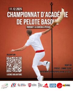 Championnat Académie de pelote basque Jeudi 11 Décembre 2025 Trinquet la Cancha à Pessac - 8h à 14h contactez Erik Souillé