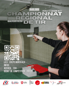 | Championnat Régional Tir qualificatif CFU | 26 Février 2026 19h accueil 19h30 début de compétition | Creps Bordeaux | avant le 24/02/26 | https://gestion.mysportu.com/manifestations/show/933 | ![]() |